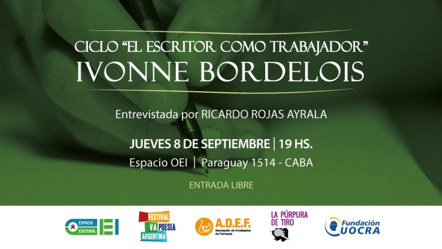 En el marco del ciclo "El escritor como trabajador”, el Secretario de Cultura de ADEF, Ricardo Rojas Ayrala, realizará una entrevista pública a la escritora Ivonne Bordelois.
