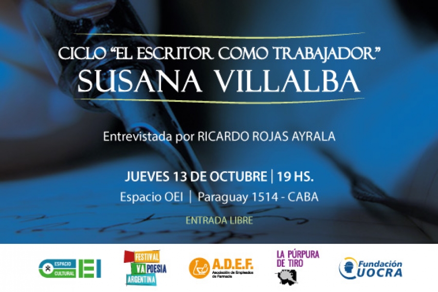 En el marco del ciclo "El escritor como trabajador”, el Secretario de Cultura de ADEF, Ricardo Rojas Ayrala, realizará una entrevista pública a la escritora Susana Villalba.